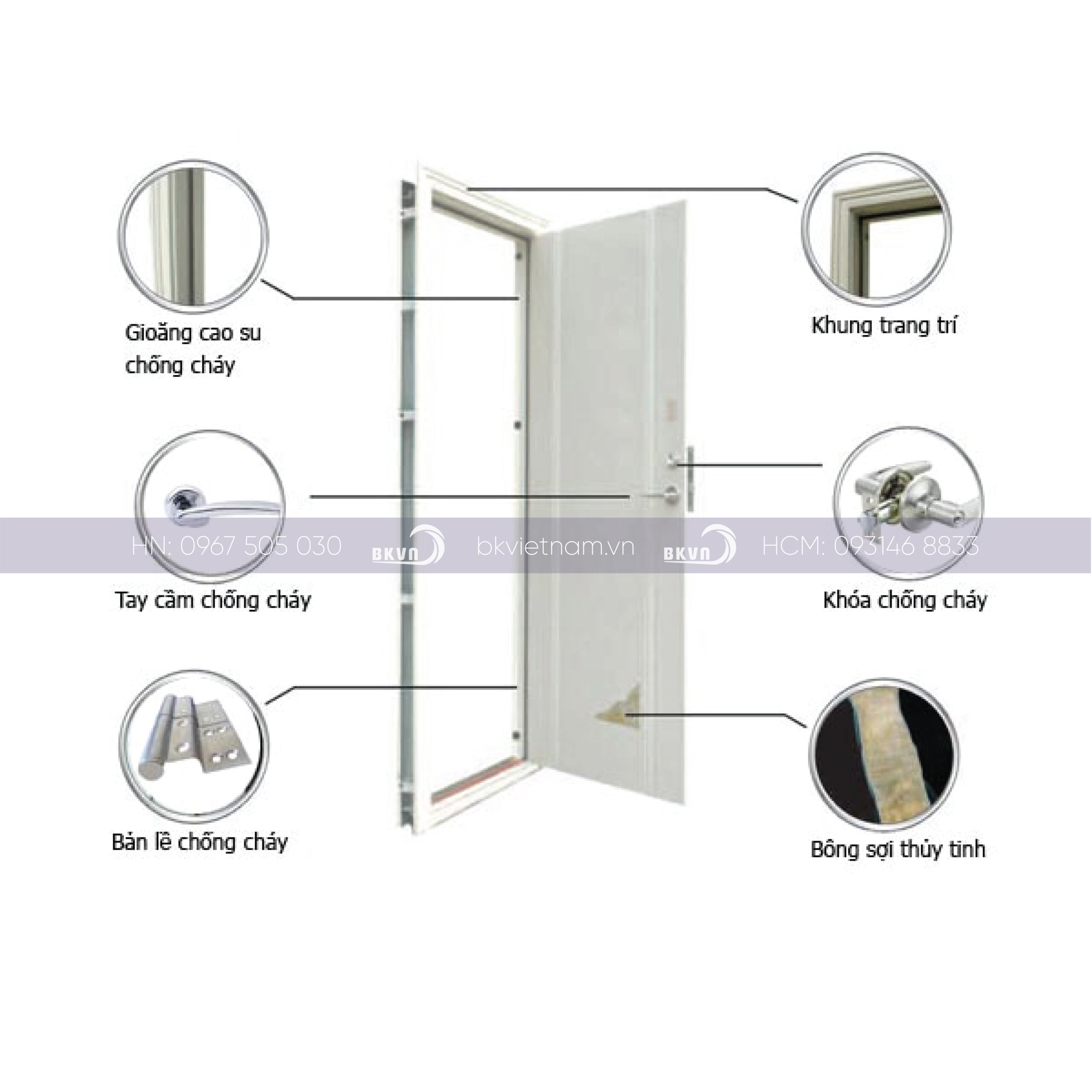 BKVN là công ty tiên phong trong lĩnh vực các sản phẩm hệ thống chống cháy, cửa chống cháy, cửa thép an toàn trên toàn quốc. Phụ kiện cửa đảm bảo theo quy chuẩn PCCC. Đến với BKVN bạn sẽ nhận được:
